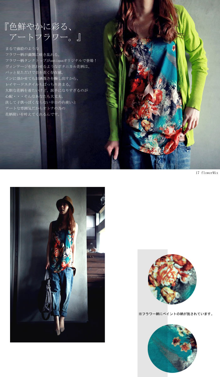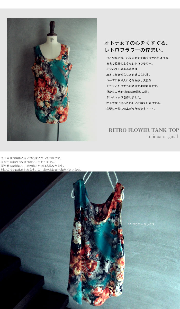 絵画を思わすような繊細さ、フラワータンクトップ・4月28日20時〜再再販。『オトナ女子の心をくすぐるレトロフラワーの佇まい。』